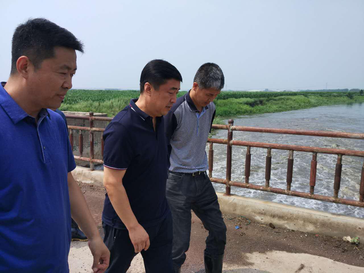 王涛徒步走上合心镇王家楼拦河闸,他指出,要进一步强化责任意识,居安思危,时刻保持警惕,扎实做好防汛工作。在合心污水处理厂项目选址现场,与镇里共同研究确定施工机械出入路径,王涛强调,特许经营协议几个大的原则要坚持不变,项目建设还需要进一步加快速度,按照序时进度安排加紧推进。