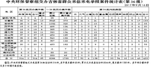 9月16日,我省接到中央环保督察组交办的第三十六批案件,共计314件。其中,重点案件85件。